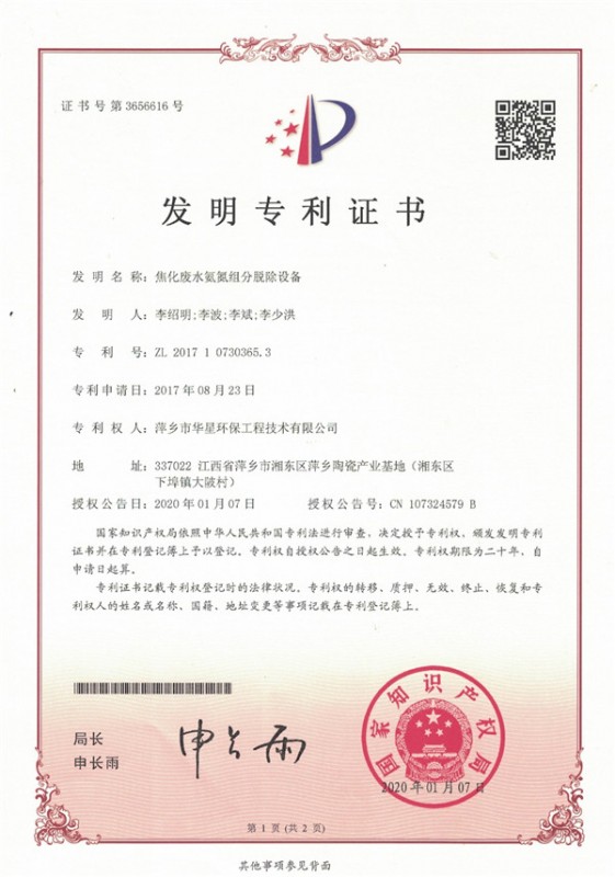 - 發(fā)明專利——焦化廢水氨氮組分脫除設(shè)備