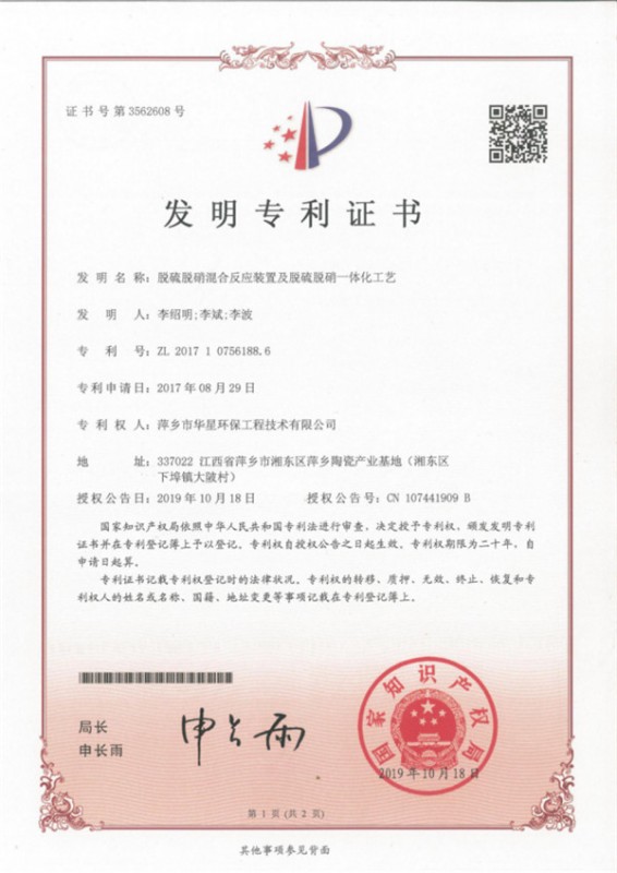 - 脫硫脫硝混合反應裝置及脫硫脫硝一體化工藝