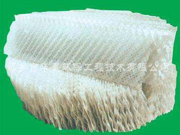 塑料規(guī)整填料具有重量輕,通量大、壓降低、比表面積高、易更換等優(yōu)點。絲網(wǎng)波紋填料由聚丙烯與聚丙烯腈線混合編織網(wǎng)組成。波紋填料可采用聚丙烯PVDF板,為提高傳質(zhì)效率,板上可開孔。塑料規(guī)整填料有:板波紋填料、孔板波紋填料、絲網(wǎng)波紋填料和斜波紋填料等。